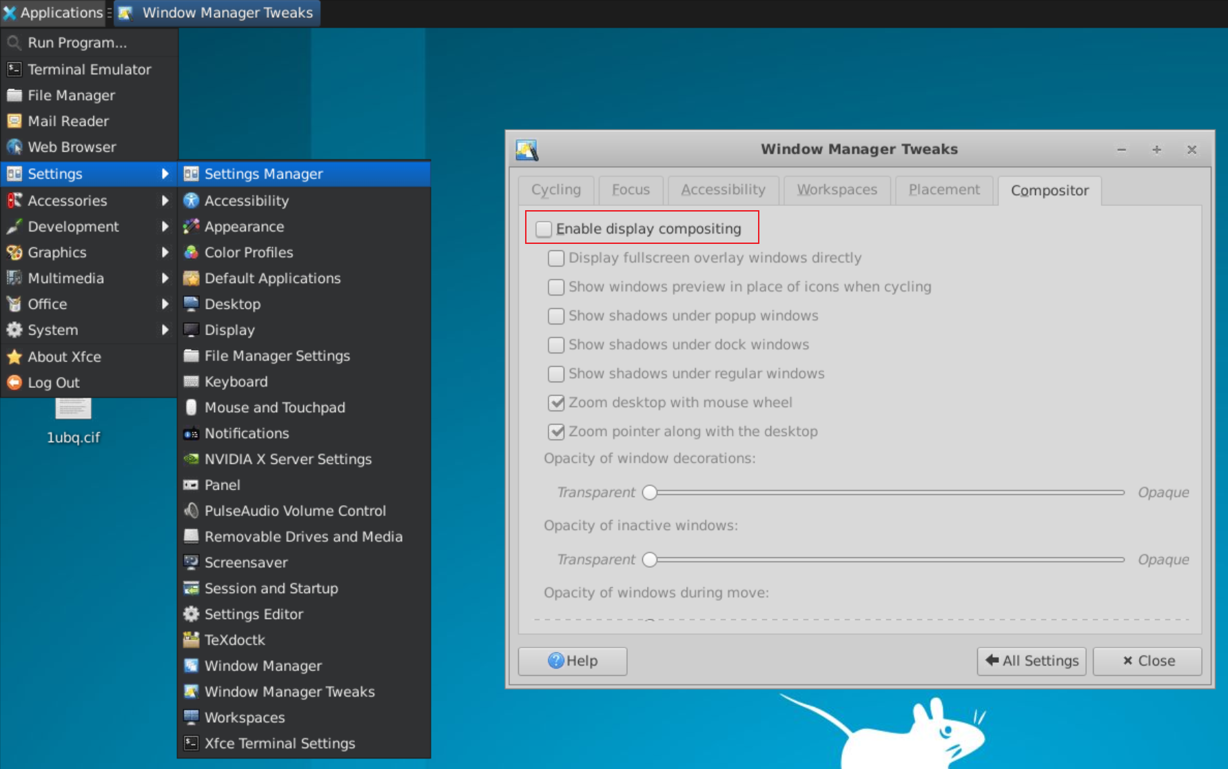 The phenomenon leads from overwhelming special effects of xfce. There are two solutions.